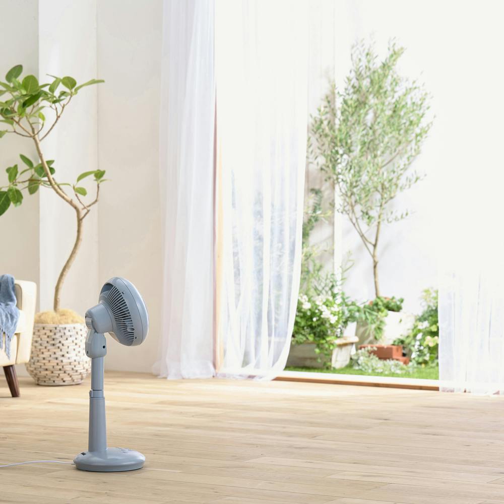 WOOZOOシリーズにサーキュレーター扇風機が新登場!多種多様な使い方で、心地良い風を届けます。扇風機のやわらかな涼しさとサーキュレーターの強力な撹拌能力をあわせ持ったサーキュレーター扇風機です。上90°、下15°、左右60° ・90°・120°と、上下左右に首振りが可能です。スパイラルドームグリルが、風を中心に集め、直線的に整流することで、より遠くまで届くスパイラル気流を発生させます。立体形状の羽根を採用、表面積を広くとり、風切り音を抑えながら多くの風を送り出します。
