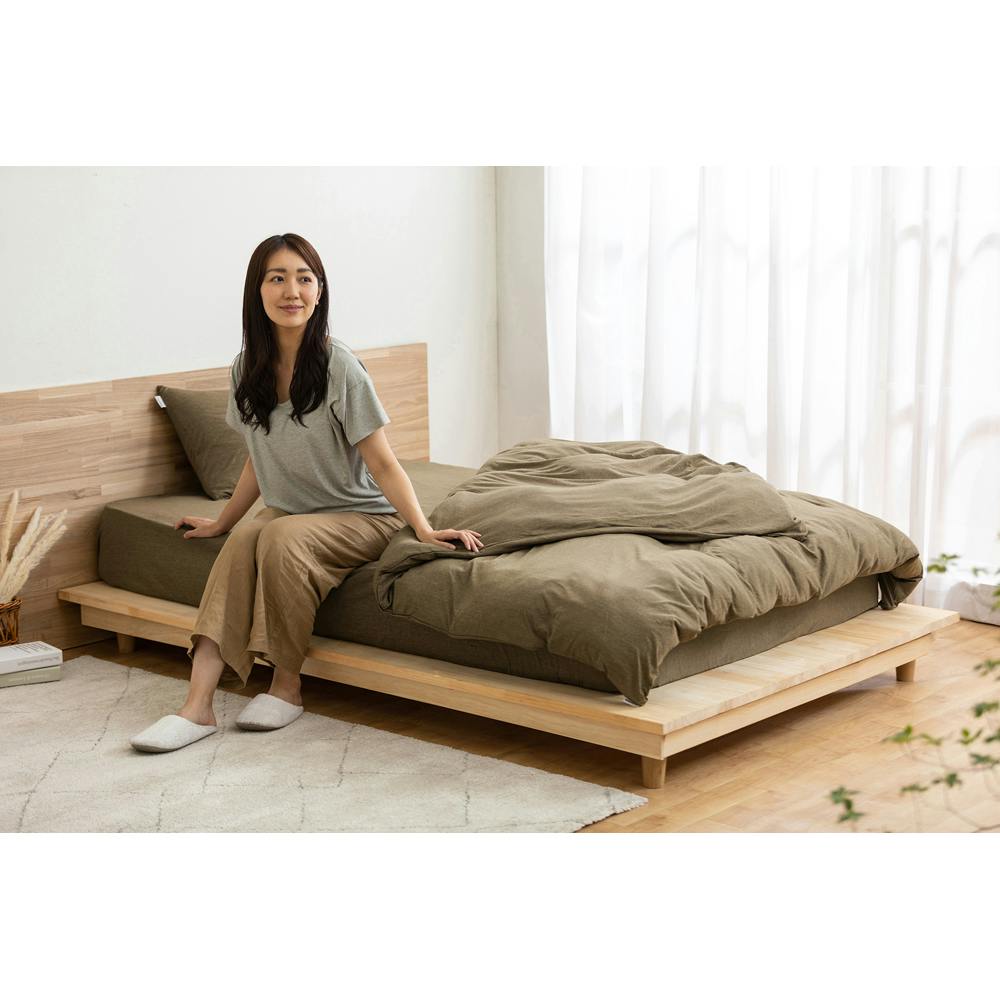 天竺ニット生地を使用しているボックスシーツです。柔らかく肌なじみのよい質感です。お部屋に落ち着いた雰囲気を出す生地感です。洗濯可能です。全周にゴムがついているので、カバーがずれにくくなっています。着脱が簡単に行えます。(天竺は、Tシャツなどに使われる柔らかく肌触りのよい編地です。) ●目付け(約):120g/平方メートル ●マチ幅(約):300mm ●対応ふとんサイズ(約):1,200×2,000mm ●対応マットレスサイズ(約):1,200×2,000×250mm