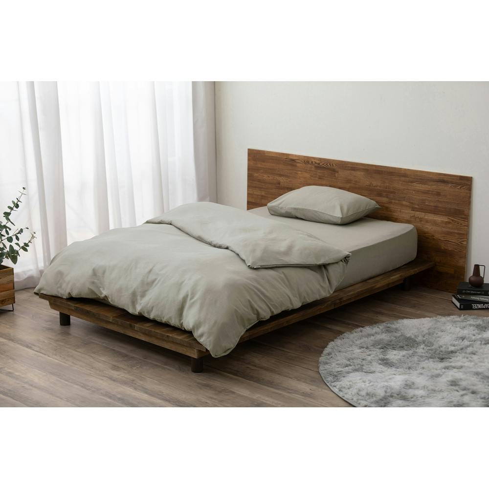 ワッフル生地を使用しているボックスシーツです。凸凹感があり、さらりとした風合いです。洗濯可能です。全周にゴムがついているので、カバーがずれにくくなっています。着脱が簡単に行えます。(ワッフル生地は、生地面にお菓子のワッフルのようなマス目状の凹凸がある織り物です。凸凹はタテ糸とヨコ糸を浮かすことで作られているため、立体感のあるテクスチャーが特徴です。)
