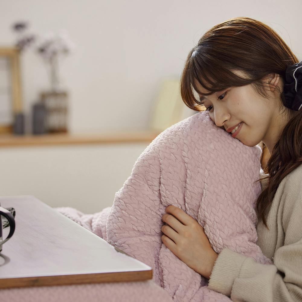 ふんわり柔らかなソフトベロア素材のリバーシブルカラーのこたつ掛け布団です。表側はヘリンボーン柄、裏側は無地でシンプルです。長方形の定番サイズです。裏側は吸湿発熱機能の生地を使用しています。身体から発する水分を吸湿し熱を生み出します。蓄熱綿を使用することで、保温性を高め暖かさを持続します。生地に抗菌・防臭加工を施しています。洗濯可能です。