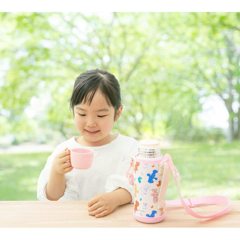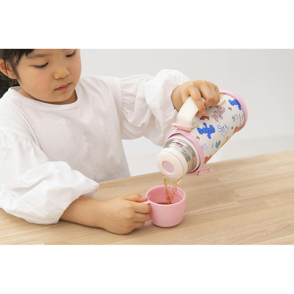ポーチを外すとシンプルなデザインのボトルなので、長くお使いいただけます。肩から掛けられるストラップ付きポーチは持ち運びに便利です。ポーチは衝撃に強い底面設計です。さらに名前を書けるネーム欄付きです。スペアパッキンが1組付いているため、汚れたり破損した際にすぐに交換することができます。保温・保冷両用です。(※熱い飲み物を入れる際は、コップ付きタイプをご使用ください)。