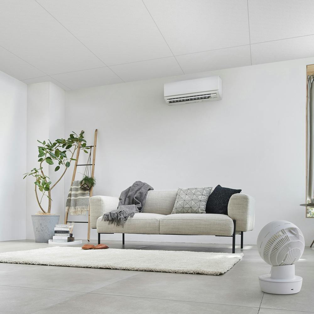 DCモーター搭載で省エネ、静音設計です。 6段階の風量調整のうち、1~3段階までが一般的に静音と言われる35dB未満です。寝室や書斎など、使用シーンに合わせた細やかな風量の調節が可能です。