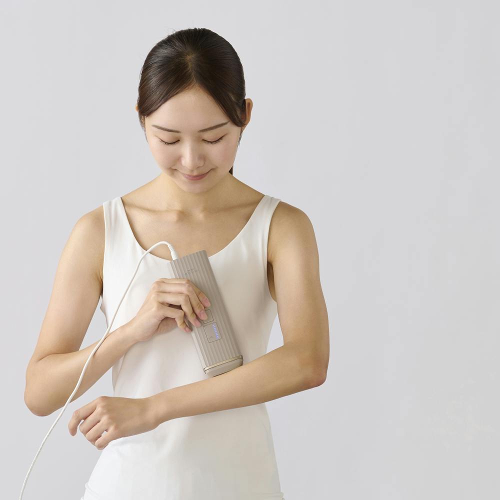 初めてのムダ毛ケアの方にも優しい機能を備えた光美容器です。肌への負担が少ないIPL方式。冷却機能付き。肌をしっかり冷却し、照射による肌への負担や刺激を軽減します。冷却ジェルが不要なので、手軽にムダ毛ケアができます。9段階の照射レベルで、自分のお肌に合わせて照射パワーを細かく調整できるから、部位に合ったムダ毛ケアができます。安全センサー付き。肌を守る肌色センサーで、感知した肌に応じた照射レベル以上では、照射できないので安心です。