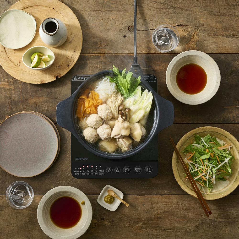 加熱料理から揚げ物まで多用途に使えるIHコンロと軽くて丈夫な鍋がセットのIHコンロ鍋セットです。料理の幅が広がる”新機能”温度調理モード!サラダチキンなどの低温調理や煮込み料理、料理の保温などに使用出来ます。60℃、70℃、80℃、90℃、100℃で調節可能です。IHコンロの商品特徴:IHコンロは熱効率が良いため光熱費の削減が出来て経済的です。火加減調整がしやすく、高火力で調理が快適です。火を使わないので空気を汚さず一酸化炭素中毒の危険がありません。拭くだけで、らくらくお手入れできます。