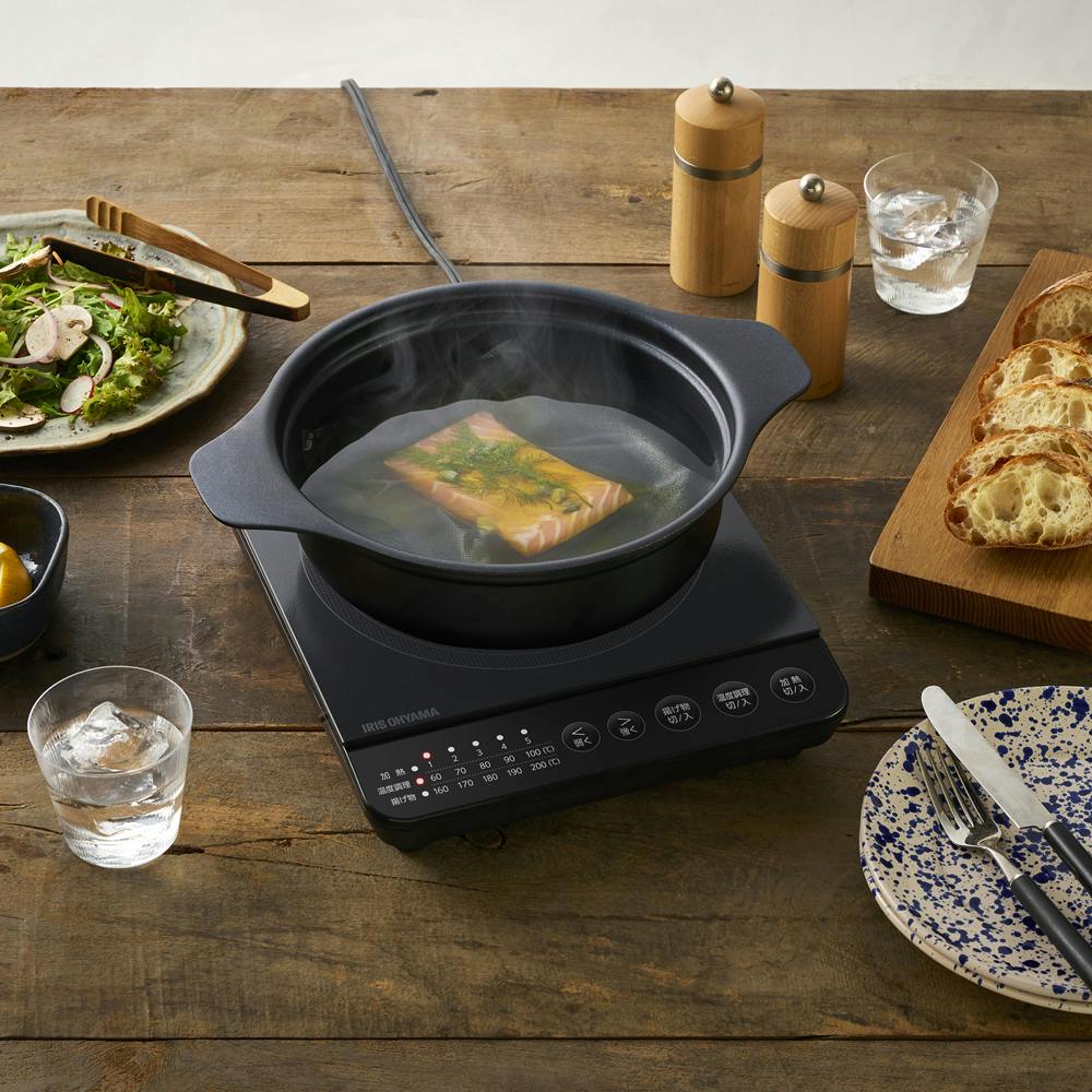 アイリスオーヤマ IHコンロ鍋セット1000W IHKP-T39220-B ブラック 保温 調理 IH調理器 4967576666268【別送品】