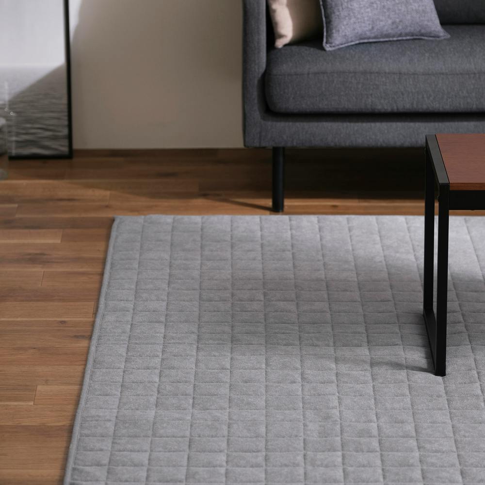 タオル素材の生地(シンカーパイル生地)を採用したラグです。タオルのような優しく柔らかな肌触りが特徴です。ナチュラルなデザインで、お部屋を選ばない万能ラグです。裏面にすべり止めが付いているので、ラグがずれるのを防ぎます。オールシーズン快適にお使いいただけます。床暖房、ホットカーペット対応です。洗濯可能です。(シンカーパイル生地は、シンカーという丸編み機でパイル織りがされた、タオル素材の生地です。通常のタオル生地とは異なり表面にだけループがあります。)