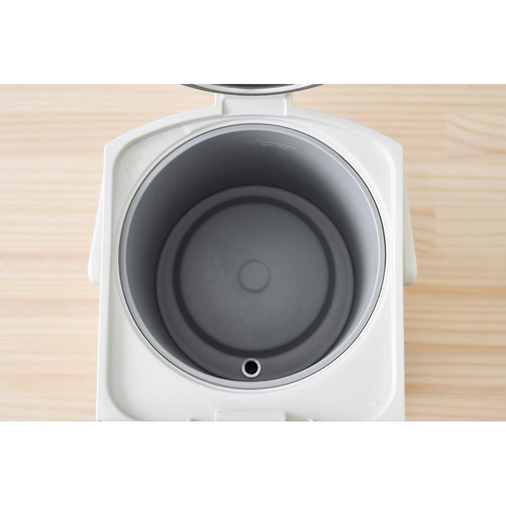 給湯自動ロック機能により一定時間操作されない場合、自動的に給湯ボタンをロックするので安心です。ふたが外せるため給水やお手入れが簡単です。ガラス管をLEDで点灯し、保温/沸とう中の状態表示を行います(保温:青/沸とう中:赤)。省エネモード付き。約2時間再沸とう・保温選択の操作がないときは、自動でヒーターへの通電を停止したあと、約70℃で保温を開始し、消費電力量を節約できます。内容器にフッ素加工が施されており、汚れが付着しにくいためお手入れが簡単です。