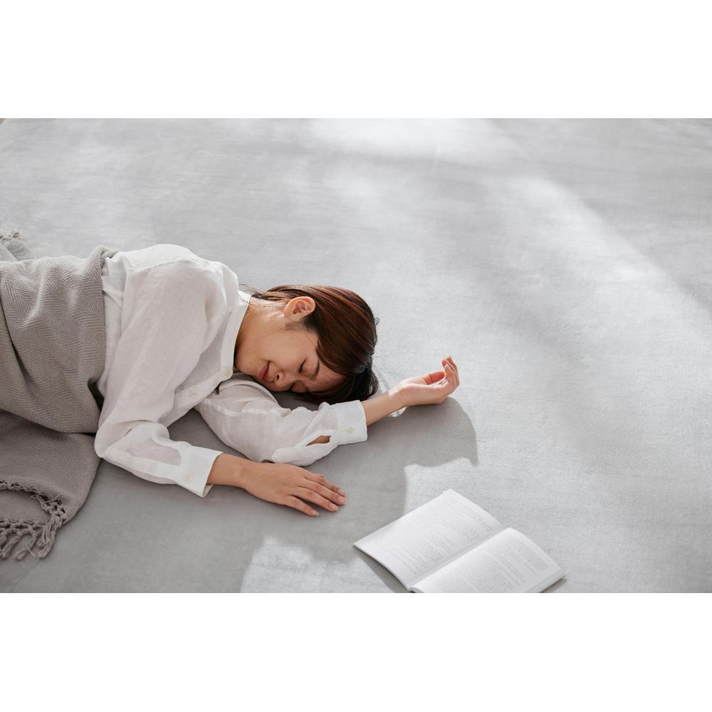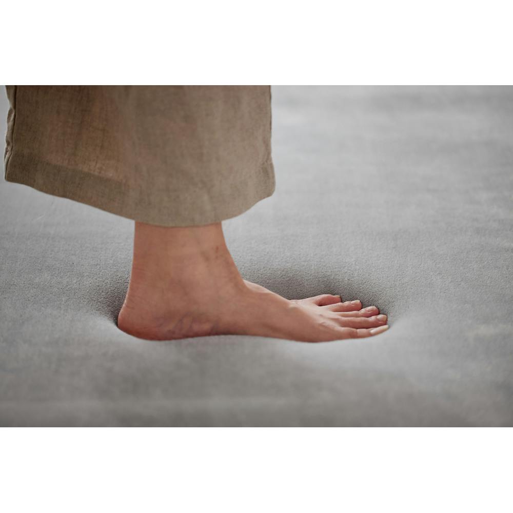 厚さ約5cmの極厚タイプで、床つきを感じさせないボリュームのあるラグです。むぎゅっと足が沈み込む抜群の踏みごたえです。表地は極細繊維のマイクロファイバーを使用し、なめらかでやわらかい手触りです。厚さ約5cmなので、防音効果もあります。お子様やペットのいるご家庭、集合住宅の騒音対策にもぴったりです。裏面にすべり止め加工を施しているため、ラグがずれにくく安心してご使用いただけます。オールシーズン快適にご使用できます。床の冷たさが伝わりづらくなっています。輸送・持ち運びがしやすい圧縮梱包を行っています