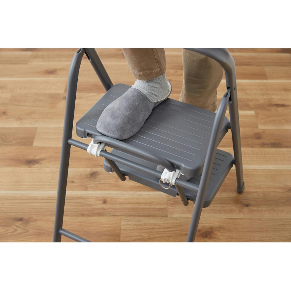 お部屋に馴染みやすいニュアンスカラーです。 ●耐荷重(約):100kg ●収納時サイズ(約):400×80×905mm ●ステップサイズ(約):340×220mm ●ステップの高さ(約):1段目 235mm、2段目 450mm