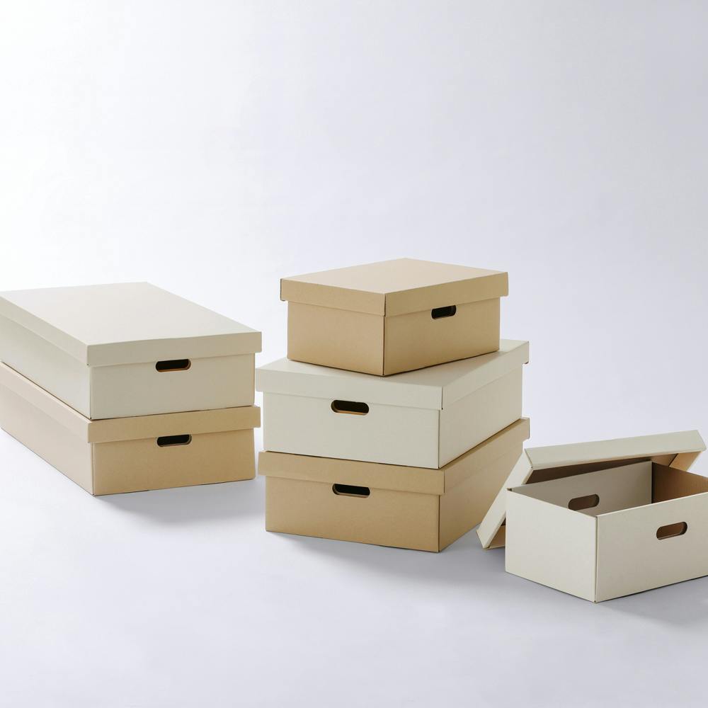 段ボール製のふた付き収納ケースです。ベッド下やクローゼット、ボックスと併せて使用したり場所を問わずお使いいただけます。小物や衣類、おもちゃなどが収納できます。取っ手付きで持ち運びもらくにできます。段ボール製のため不要になった際に捨てやすく処分も簡単です。お客様組み立てとなります。簡単組み立てです。 ●商品内寸(約):695×365×155mm