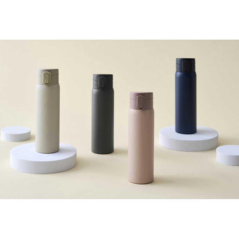 片手で簡単にロックを解除して、ふたを開けることができる便利なワンタッチタイプのマグボトル(ステンレス製携帯用まほうびん)です。ロック付きで持ち運びにも安心です。保温・保冷性が高い真空断熱構造のため、飲みごろ温度が維持されます。飲み口を取り外して洗えるので、お手入れが簡単で衛生的に使えます。取り外し、取り付けも簡単です。保温・保冷両用です。マットな質感で落ち着いたカラーです。 ●実容量:0.5L ●保温効力:69度以上(6時間) ●保冷効力:7度以下(6時間) ●口径(約):45mm