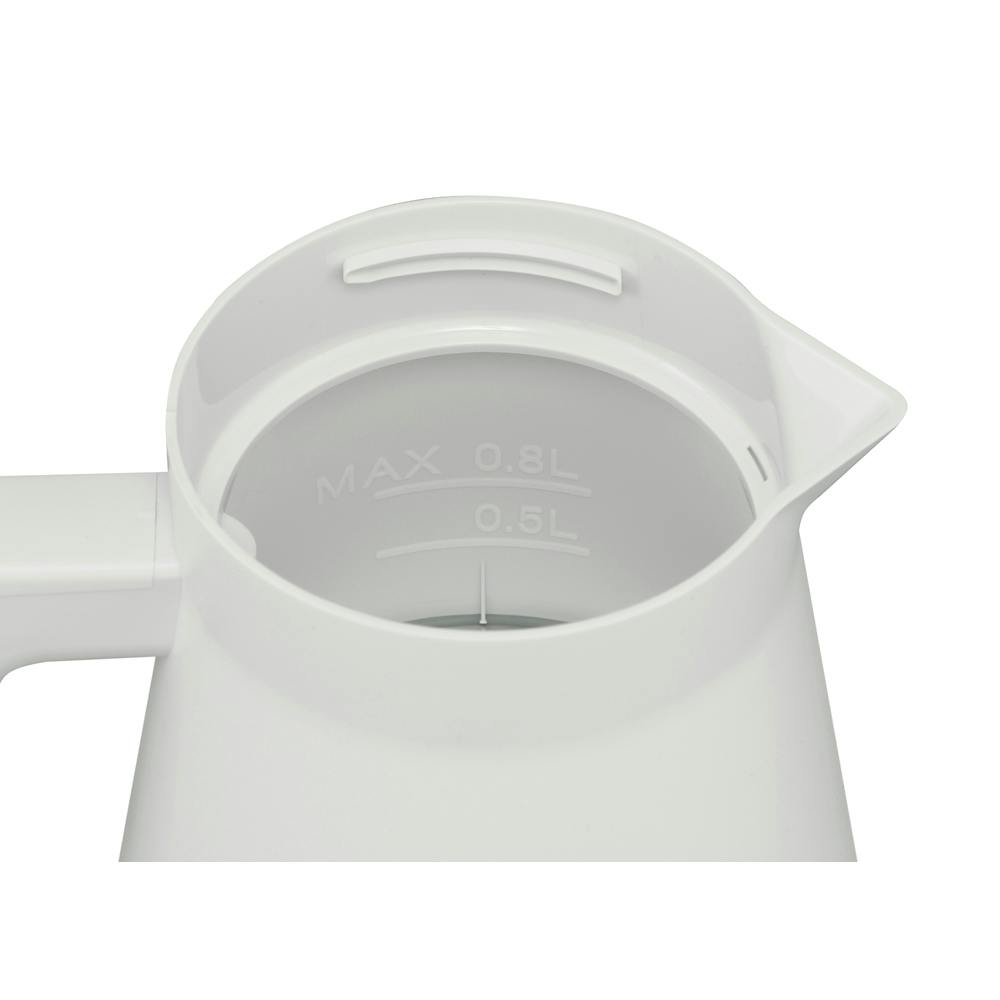 カップ1杯(140mL)約60秒でスピード沸騰!シンプル機能で使いやすい電気ケトルです。転倒湯漏れ防止構造で、倒れてもお湯がこぼれにくい安心設計!誤って本体を倒してしまっても、お湯漏れを最小限に防ぐ設計なので、安心してお使いいただけます。お湯が沸騰すると自動でスイッチが切れる自動電源オフ機能があるので安心です。容器内が空の状態で電源スイッチを入れても、電源が自動的に切れる空焚き防止機能を搭載しています。本体と電源プレートがセパレート式になっているので、本体の持ち運びがしやすいです。