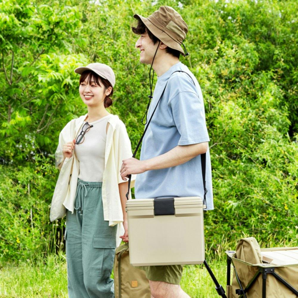 本体内側に抗菌加工を施したクーラーボックスです。フタがワンタッチで取り外せるので簡単に丸洗いができます。500mlのペットボトルを立てたまま収納できます。ハンドルとショルダーベルトが付いているので、持ち運びに便利です。 ●収納の目安:500mlペットボトル15本、500ml缶20本 ●容量(約):15L ●商品内寸(約):296×198×247mm