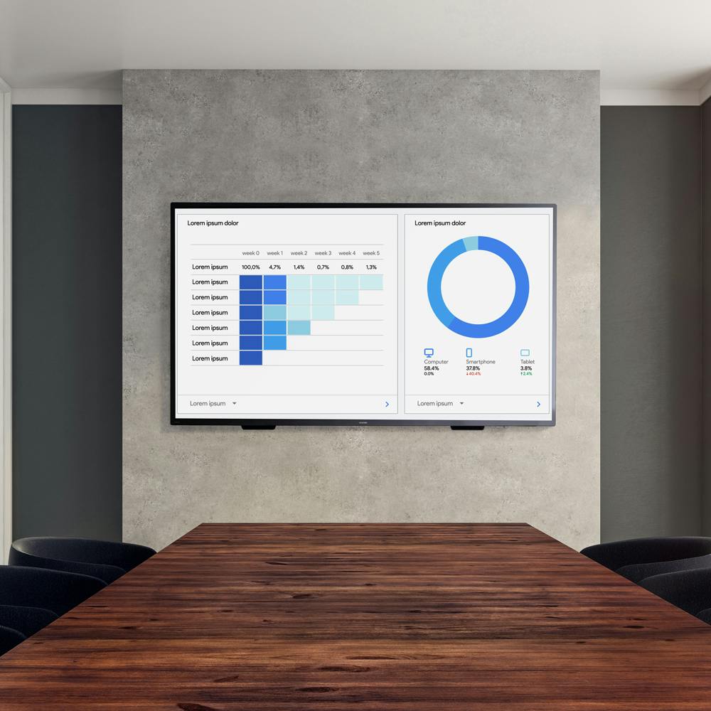 4Kパネルで高画質、大画面でも高精細な映像を再現する4K大型液晶ディスプレイです。43V型以上の大型画面なので、大人数でのミーティングでも使用可能です。マウント取付用穴有り:壁掛けでも使用でき、省スペース化が可能です。※壁掛けで使用する際は、壁掛け金具(別売品)が必要です。壁掛け金具(別売品)を購入する際は、製品の規格をご確認ください。