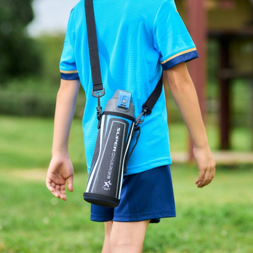 そのまま飲める直飲みタイプで、スポーツ時などの水分補給に最適なダイレクトボトルです。保冷専用です。真空二重構造のため、冷たさを保ち、飲み物を保冷できます。ロックを解除し、ワンタッチオープンで簡単にふたを開けることができます。口径約40mmで、製氷機で作った氷も入れることができます。肩から掛けられるストラップ付きポーチが付属されており、持ち運びに便利です。ポーチの底面は衝撃に強いハード底仕様です。ポーチは洗濯機で洗えます(洗濯ネットを使用してください)。