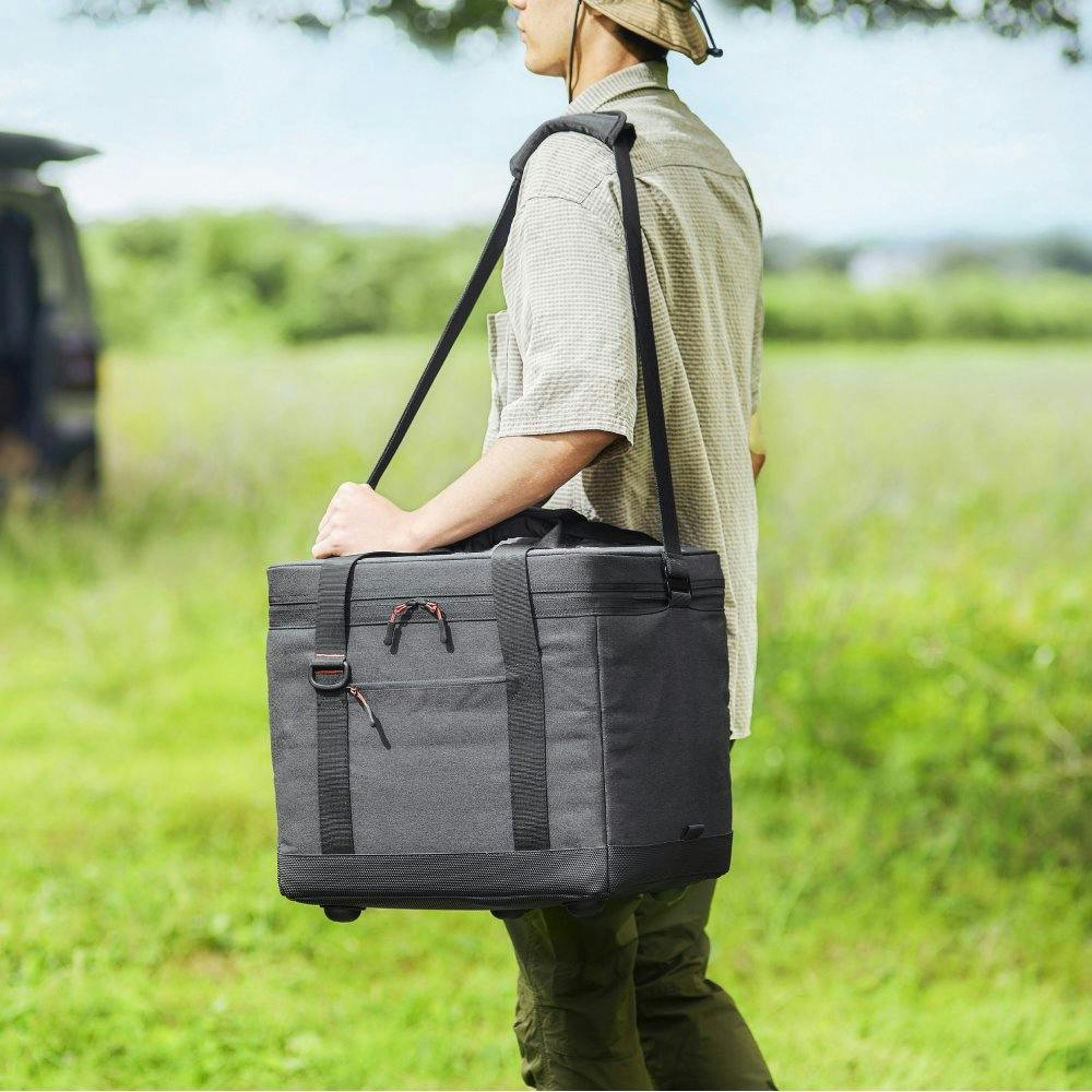 宇宙服にも使用される高断熱素材のエアロゲルを6面に採用したソフトクーラーボックスです。保冷日数最大5.1日【※】です。取り外しができる取っ手付きインナークーラー12層と、汚れに強いアウタークーラー6層で、18の多層断熱構造を持ち、高い断熱性で冷気の漏れを抑えます。底面には5つの脚と汚れに強いPVC素材を配し、地面から浮かせることで地熱の影響を受けにくく、汚れてもふき取りやすくなっています。スマートに折り畳むことができるので使用しない時は省スペースに収納できます。