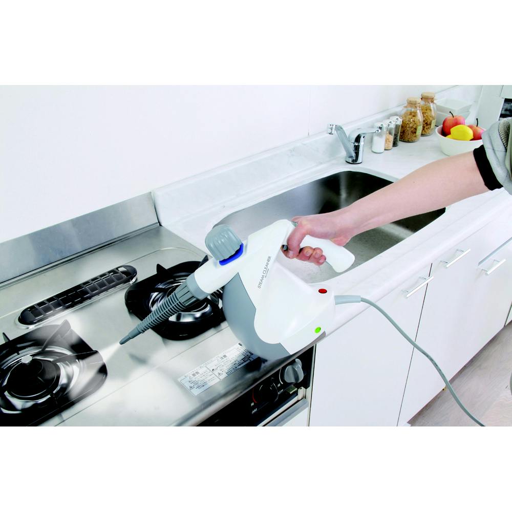 ハンディタイプのスチームクリーナーです。手軽にキッチン周りや窓のサッシなど細かい箇所のお掃除に便利です。加圧噴射方式で約100℃のスチームを噴きつけます。除菌・防カビにも効果があります。タンク容量0.3Lで最大約12分間の連続使用が可能です。チャイルドロック、セーフティキャップなど安全面に配慮しています。