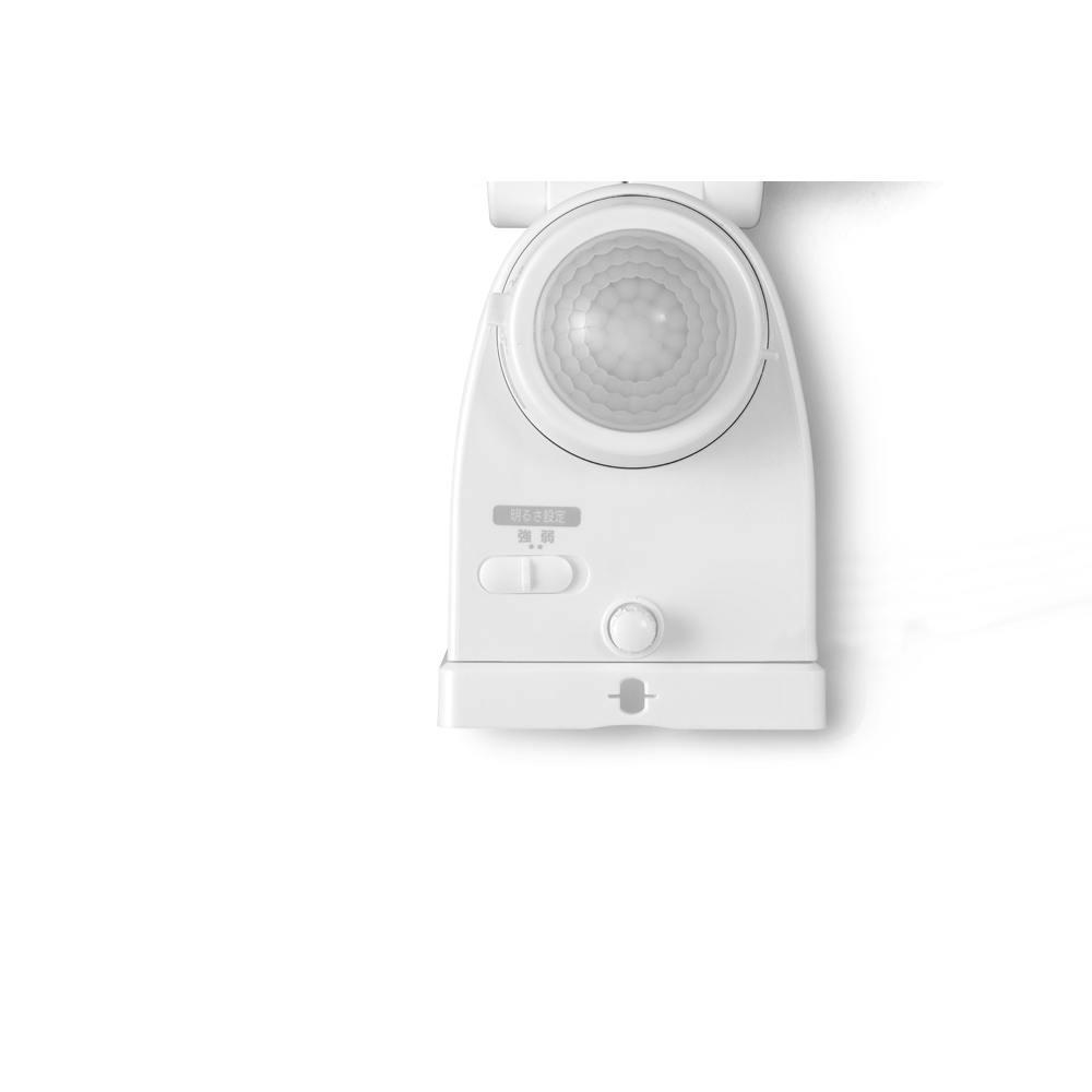 ●光源色:昼光色/電球色●全光束(最大):800ml(防犯/常灯モード、明るさ強)●感知センサー:赤外線受動式●点灯時間:約5秒~20秒(設定可能)●使用電池:単一形(アルカリ乾電池×3本(別売))●電池寿命:約6ヶ月※1日10回10秒点灯の場合●センサー感知距離:約8m●センサー感知角度:約140°(距離2mでの感知)