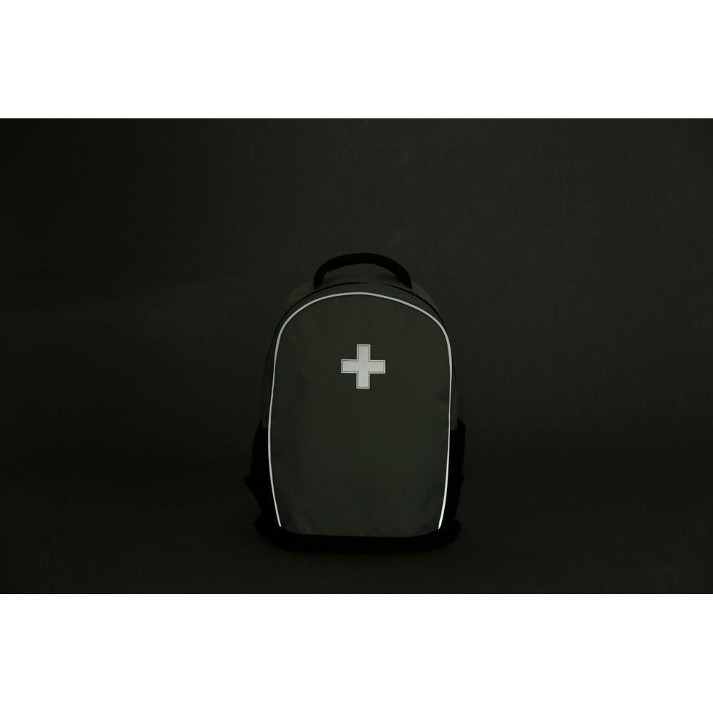 避難時にすぐに持ち出すべき必要最低限の備えに特化した、最初の1日間をしのぐためのアイテムを揃えました。小型かつ軽量で持ち運びやすい仕様です。反射板付きリュックの収納重量は約3kgです。