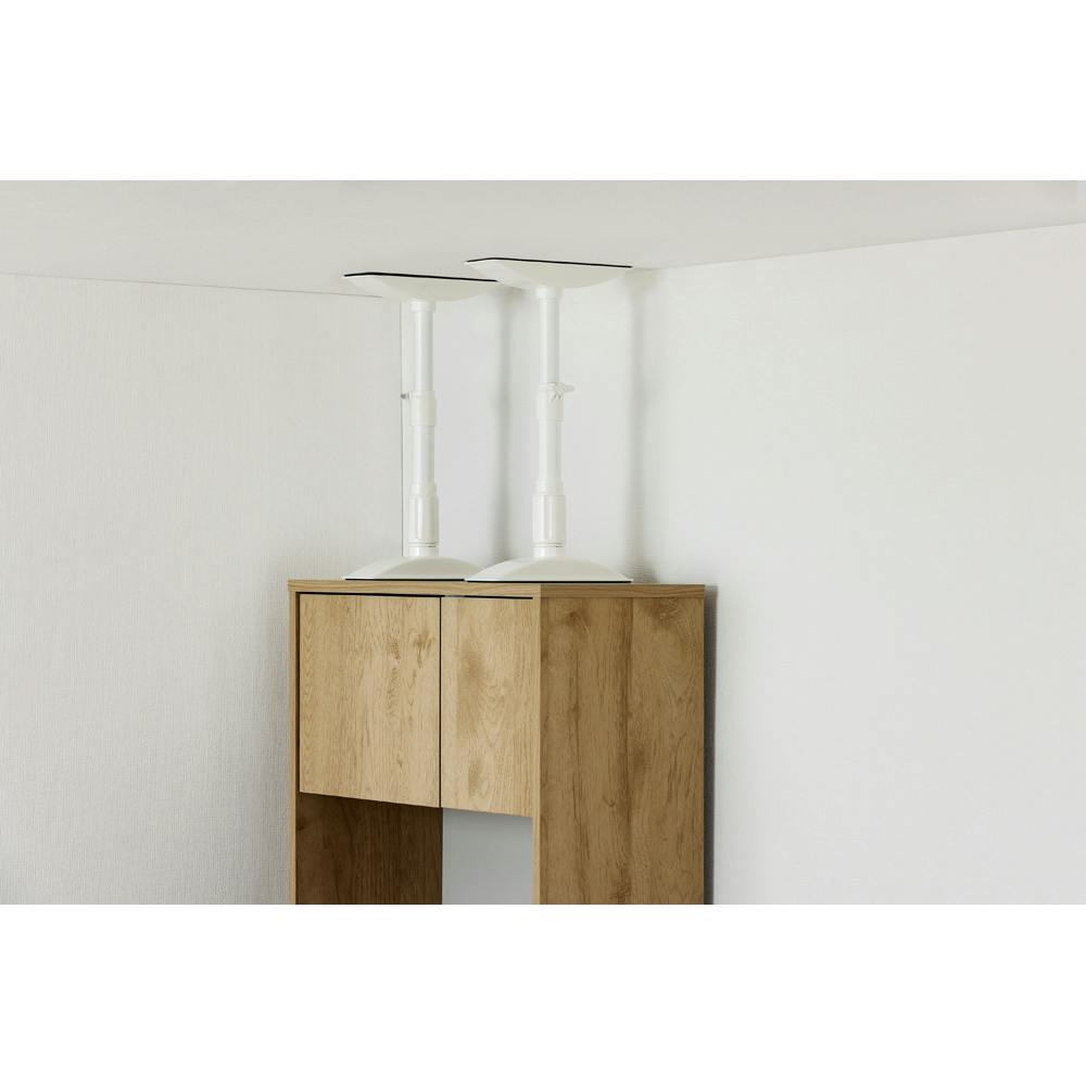 設置面の面積が広く、揺れても天井と家具をしっかり固定します。設置面に発泡ポリエチレンを使用しているので天井や家具を傷つけず、しっかり固定します。公的機関振動試験で転倒防止効果を実証済です。工具不要で取り付けが簡単です。