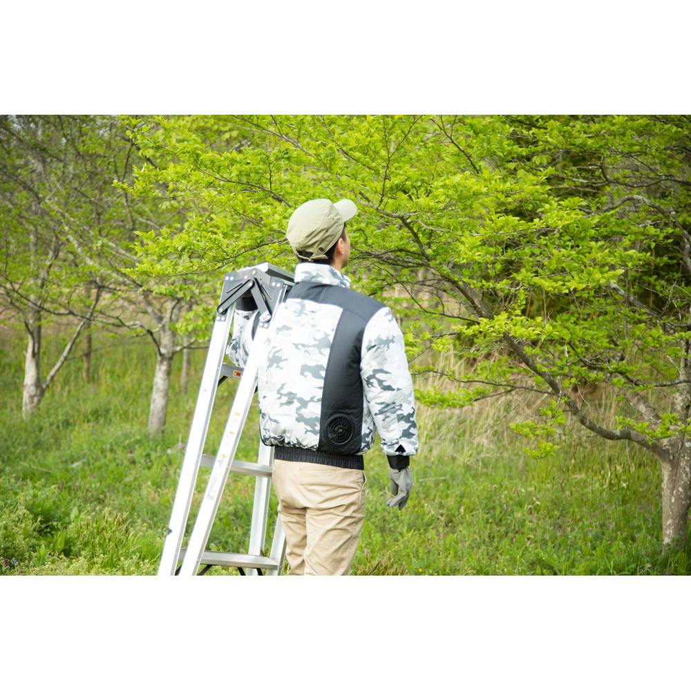 背中から首周りを効率よく涼しくできる裏メッシュデザインです。首元へ風を誘導する立体的な通気空間です。ファンが目立ちにくい配色&デザインです。専用ファン・バッテリーは別売です。