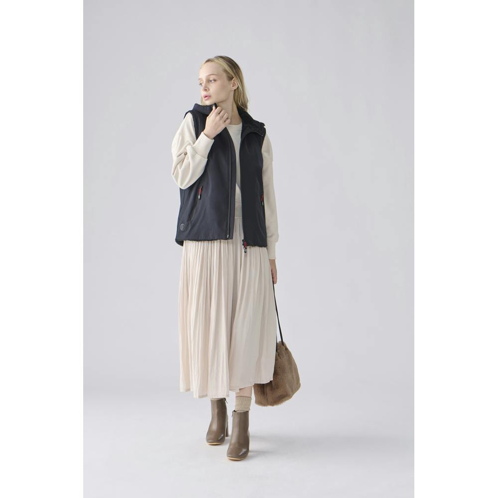 首元からフードにかけてもボアフリース生地を使用しているためあたたかです。防風仕様と水をはじく撥水加工が施されています。コントローラーで4段階の温度調節が可能です。各段階で色が変わります。3時間で自動停止する安全設計です。バッテリーを取り外して手洗い可能です。内側にバッテリーを収納するポケットが付いています。モバイルバッテリーは別売りです。ユニセックスで着用できるデザインになっています。
