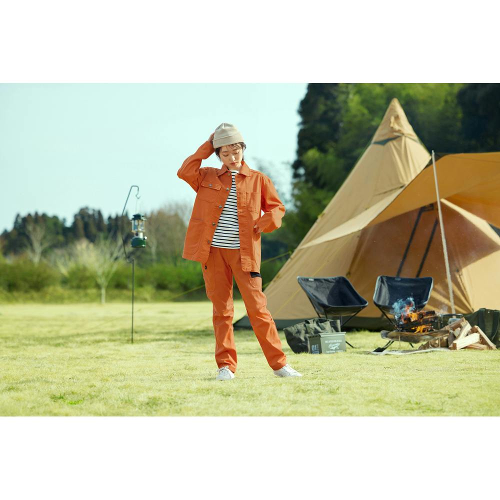 DIYやアウトドアに大活躍します。キャンプやBBQにおすすめです。難燃加工生地は燃えにくい性質のため、火の粉による穴空きを軽減します。作業道具がたくさん収まる深型多機能ポケットが7つ付いています。ファスナーポケットが1つ、スマートフォン入れ付きです。ウエストはゴム入りです。膝の曲げ伸ばしがしやすい膝立体カットで動きやすいです。ユニセックスで着用できるデザインです。