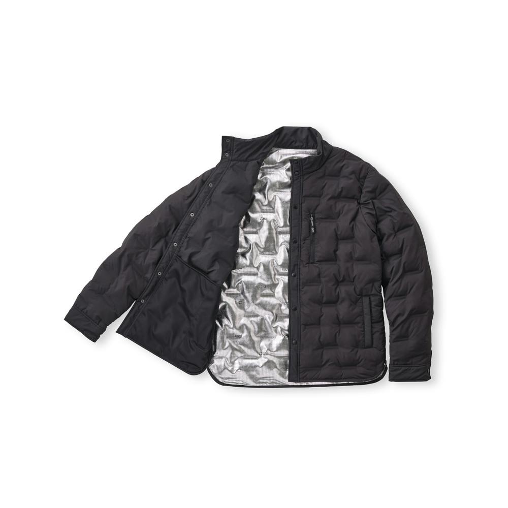 中綿の飛び出しを防ぐ縫い目のない縫製(熱圧着)を使用しています。裏地をアルミ仕様にすることで温かさをキープします。ポケットは胸元と腹部、内ポケットの計5か所です。胸ポケットのみファスナー付きです。アウトドアはもちろん、タウンユースにもおすすめです。ユニセックスで着用可能なデザインを採用しています。