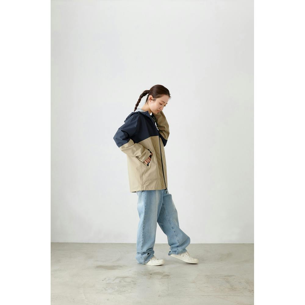 防風仕様で風を通しにくくなっています。ファスナーはすべて止水加工が施されています。フード調節のコードストッパー付きです。袖口はマジックテープで調節ができます。ファスナーポケットが左上腕部に1つ、腹部に2つ付きです。すべてスマホが収まる大きさです(※iPhone13PROの場合)。アウトドアなどマルチに活躍します。ユニセックスで着用できるデザインです。手洗い可能です。