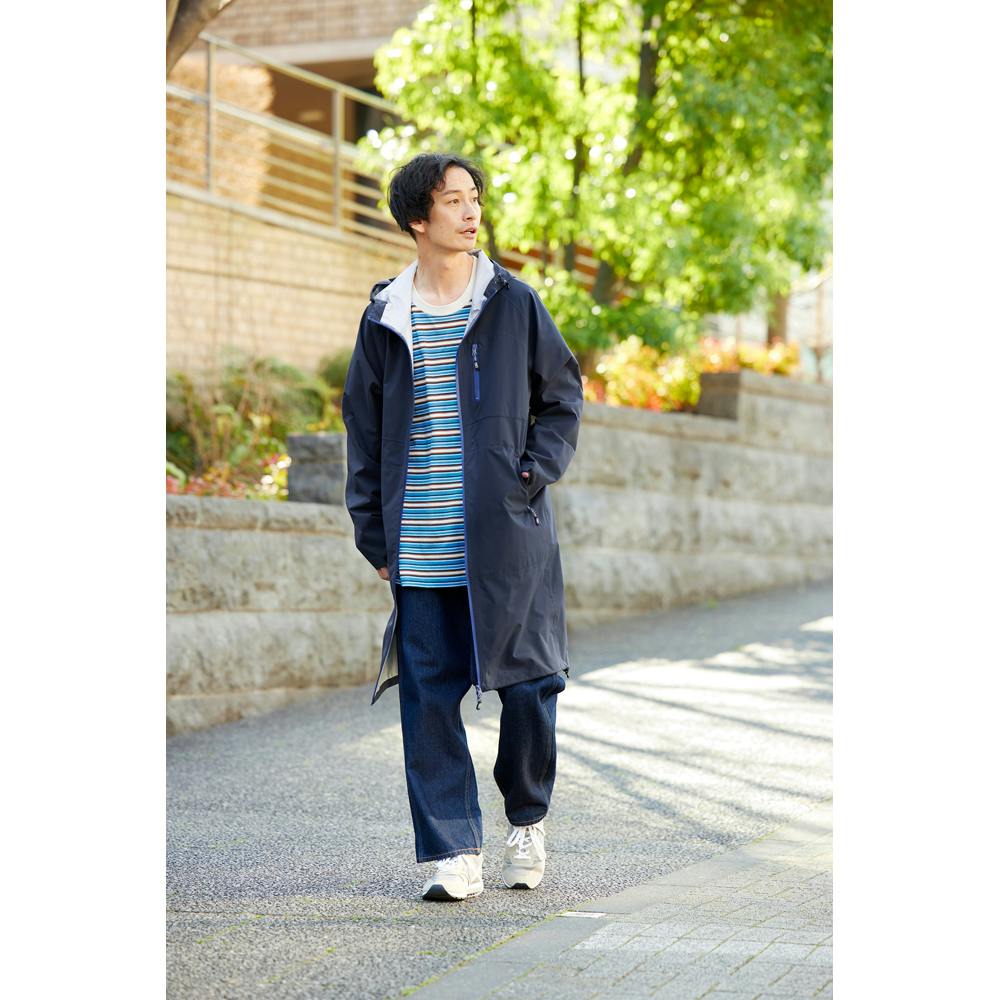 防風仕様で風を通しにくくなっています。ファスナーはすべて止水加工が施されています。フード調節のコードストッパー付きです。袖口はマジックテープで調節ができます。ファスナーポケットが胸元に1つ、腹部に2つ付きです。すべてスマホが収まる大きさです(※iPhone13PROの場合)。アウトドアなどマルチに活躍します。ユニセックスで着用できるデザインです。手洗い可能です。