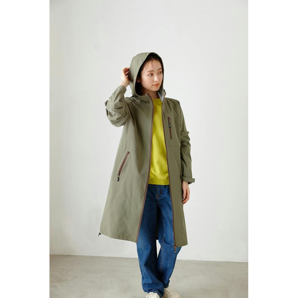 防風仕様で風を通しにくくなっています。ファスナーはすべて止水加工が施されています。フード調節のコードストッパー付きです。袖口はマジックテープで調節ができます。ファスナーポケットが胸元に1つ、腹部に2つ付きです。すべてスマホが収まる大きさです(※iPhone13PROの場合)。アウトドアなどマルチに活躍します。ユニセックスで着用できるデザインです。手洗い可能です。