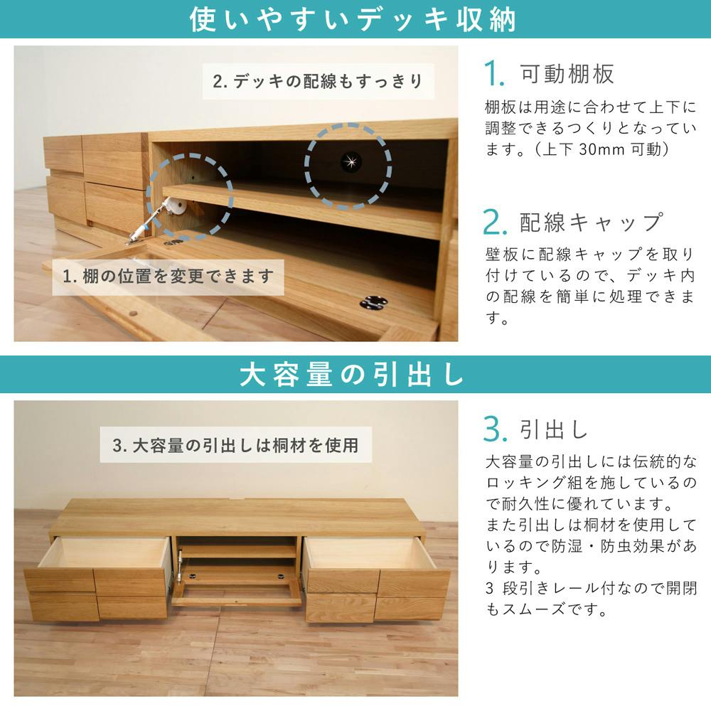 ●引き出し:大容量の引き出しには伝統的なロッキング組を施しているので、耐久性に優れています。また、引き出しには桐材を使用しているので防湿・防虫効果があります。3段引きレール付きなので開閉もスムーズです。
