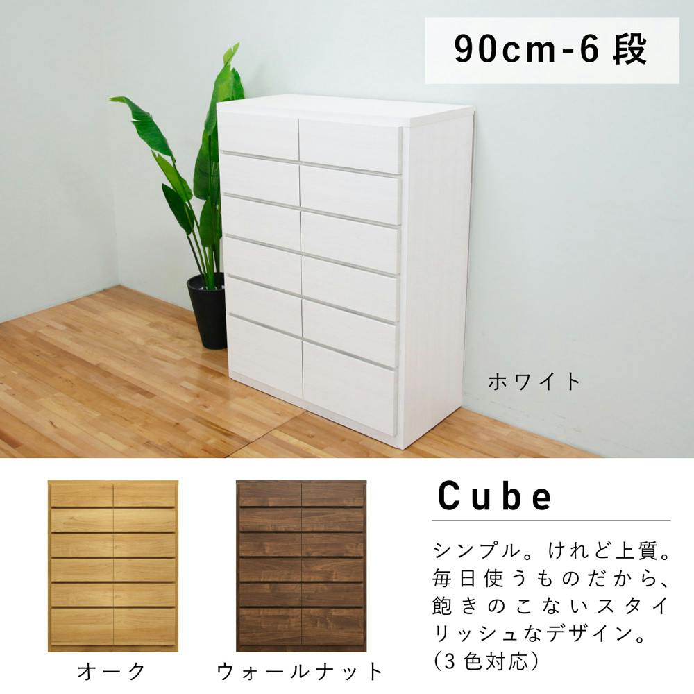丸田木工 キューブ チェスト タンス 幅90 6段 ウォールナット 収納 箪笥 大川家具 cu090600cwn【別送品】