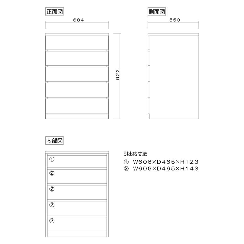 丸田木工 フィット チェスト タンス 幅70 5段 奥行55cm ウォールナット 押入れ収納 衣類収納 衣装ケース fi070555cwn【別送品】