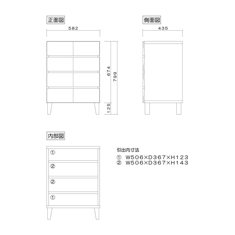 丸田木工 モデルノ チェスト タンス 幅58 4段 MIX スリムチェスト リビングチェスト 収納 md058400cmx【別送品】