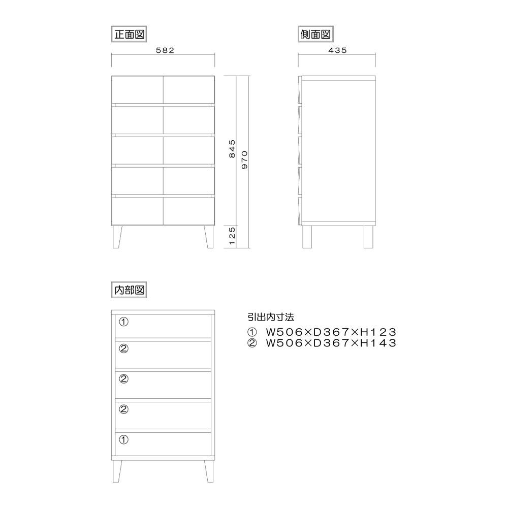 丸田木工 モデルノ チェスト タンス 幅58 5段 ウォールナット スリムチェスト リビングチェスト 収納 md058500cwn【別送品】