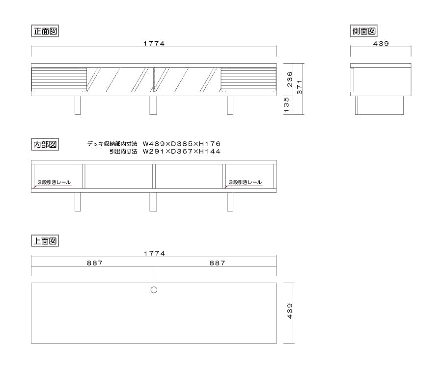 ●耐久性の高い引出し:引出しには桐材を使用しています。高級な桐ダンスに古くから使用されてきた”ロッキング組”技法を施しているので、酷使にも耐える耐久性の高い構造です。3段引きレール付きなので開閉もスムーズです。