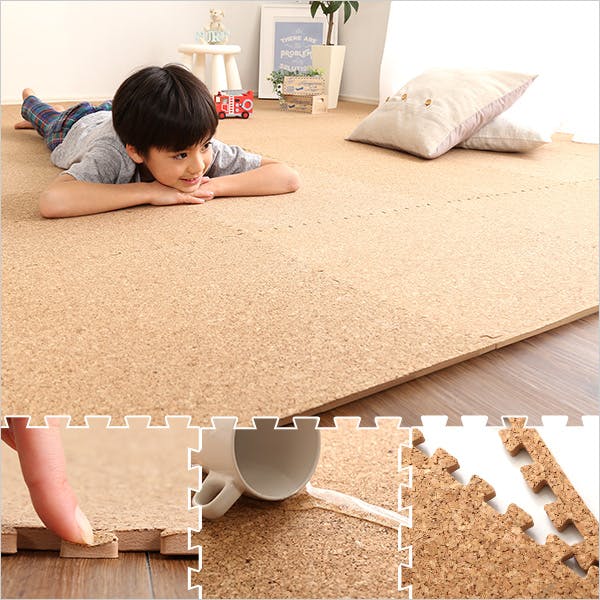 大粒の天然コルクを使用したジョイントコルクマット32枚タイプ衝撃を吸収するEVA樹脂だから防音効果や保温効果があります!安心して使える低ホルムアルデヒド商品水洗いできるから、汚れても安心♪レイアウトしやすいサイドパーツ付き