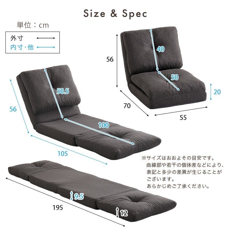 スタイルチェンジができる1人掛け3wayソファ!座椅子、カウチ、ベッドスタイルでシーンに合わせてお使い頂けます。座椅子タイプはローテーブルと一緒に使用できます。カウチタイプは脚を伸ばせてゆったりできます。ベッドタイプはちょっとした昼寝や来客用の簡易ベッドになります。ファブリック素材はオールシーズン快適に過ごせます。
