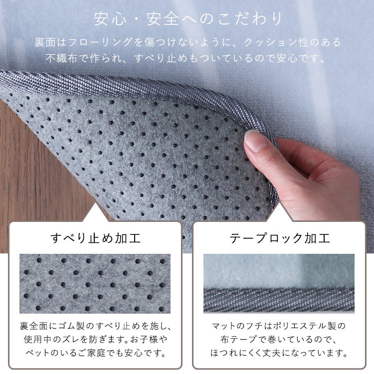 表地:ポリエステル 100%中材:ウレタンフォーム裏地:不織布(滑りにくいPVC加工付)、生産国:中国