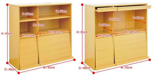 (2-1)W65.5×D41×H17cm、(2-2)W98×D38×H18.5cm