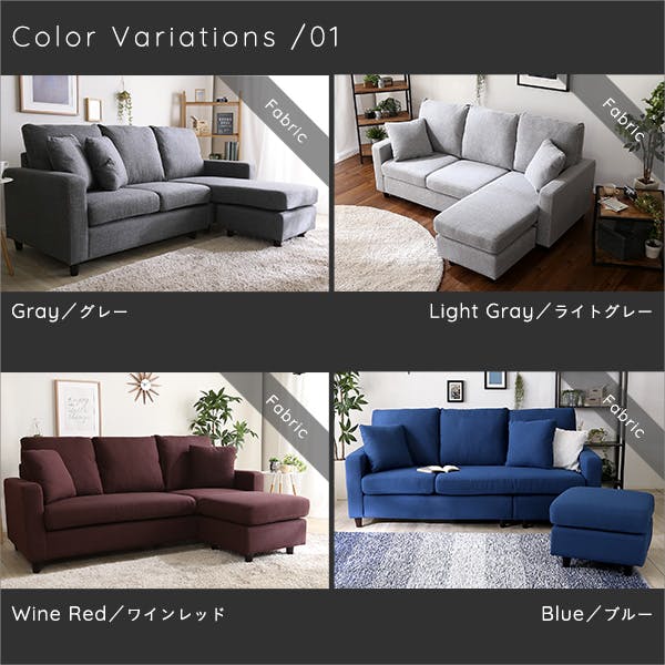【構造部材】本体:木製フレーム 脚部:天然木(高さ8cm)【張り材】ファブリック:ポリエステル 100% 合成皮革:塩化ビニル樹脂【クッション材】Sバネ、ポケットコイル、ウレタン、生産国:中国