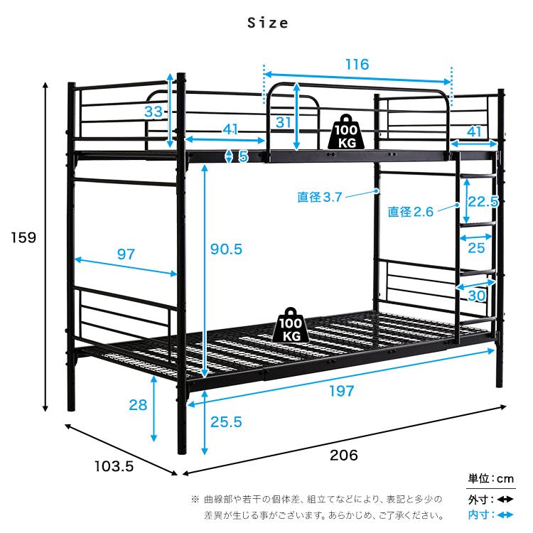 • HomeTaste 並べて連結もできる パイプ2段ベッド【Bergen-ベルゲンー】 ブラック 簡単 2段ベッド 子供部屋 HT-CP2B--BK【別送品】