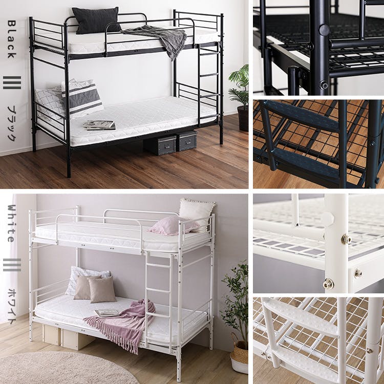 HomeTaste 並べて連結もできる パイプ2段ベッド【Bergen-ベルゲンー】 ブラック 簡単 2段ベッド 子供部屋 HT-CP2B--BK【別送品】