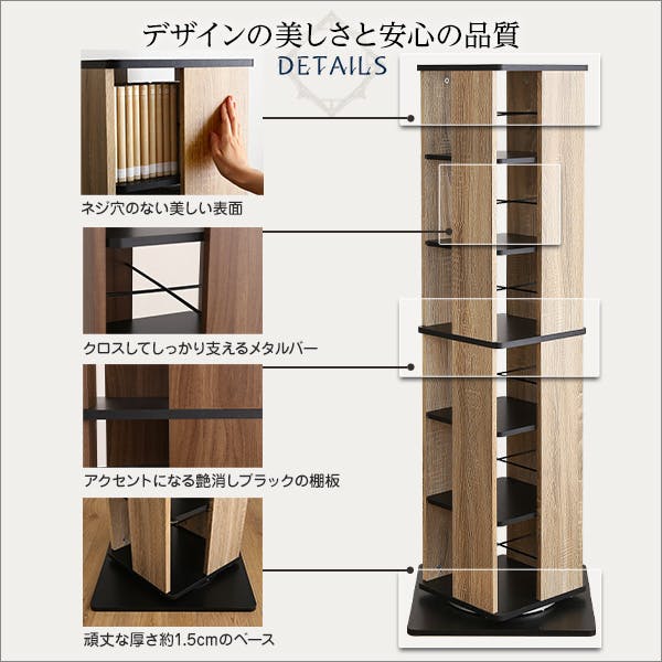 回転ブックラック6段【Kerbr-ケルブル-】くるくる回る回転式なので探しやすい!コンパクト設計だから省スペースにおける!カラーはインテリアに馴染む2色からお選びいただけます!