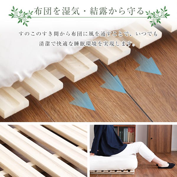 通気性バツグンのすのこベッド!材質はすのこベッドにおける最良の桐材を使用!頑丈な耐荷重180kg!布団も干せる2つ折りタイプ!