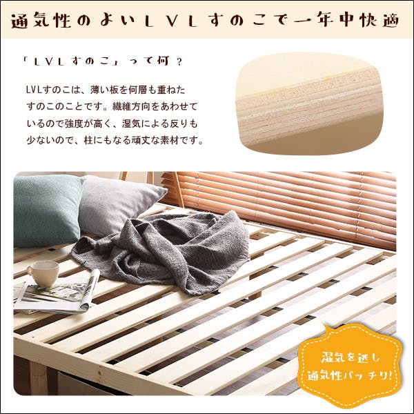 ベッド:フレーム:天然木(パイン材)、すのこ:積層合板(LVL)宮:天然木(パイン材)、スチール、生産国:中国