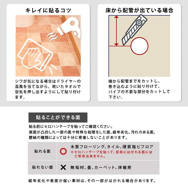 表 面:塩化ビニル樹脂100%裏 面:アクリル樹脂保護フィルム:ポリプロピレン、生産国:日本
