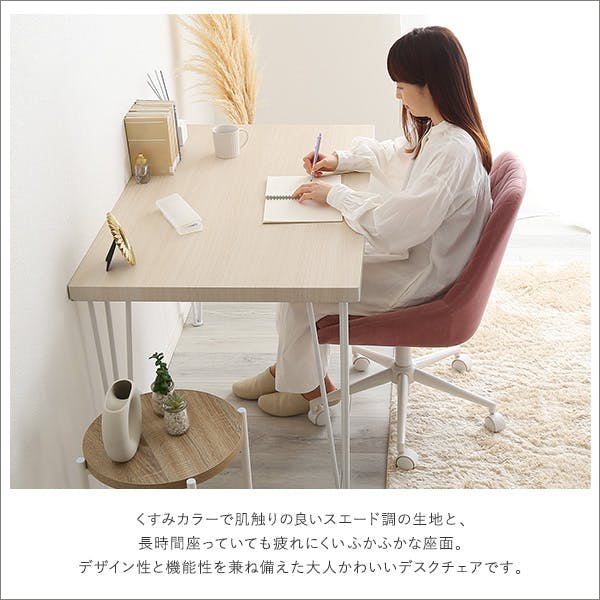 カジュアル感のあるガーリーチェアダイヤタイプ!スエード調の生地で肌ざわりが良く、長時間座っても疲れにくいウレタン座面を採用した商品です!
