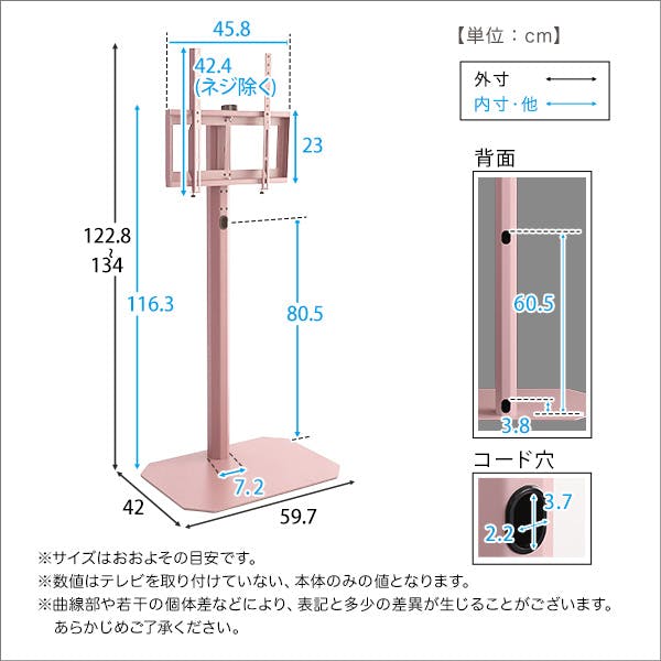 大人かわいいインテリアの八角壁寄せテレビスタンドハイタイプ 32~65インチ対応です!お部屋に馴染む落ち着いたピンク色で、好きな色に囲まれた癒しの場所になります!これ一つでお部屋の雰囲気がガラッと変わるアイテムです。スチールを使っているのでスタイリッシュで今までにない味わいがあります!240度のワイドスイング機能で見やすい角度に自由に調整して頂けます。【テレビ適応表】https://www.hometaste.co.jp/tv-compatibility-2/